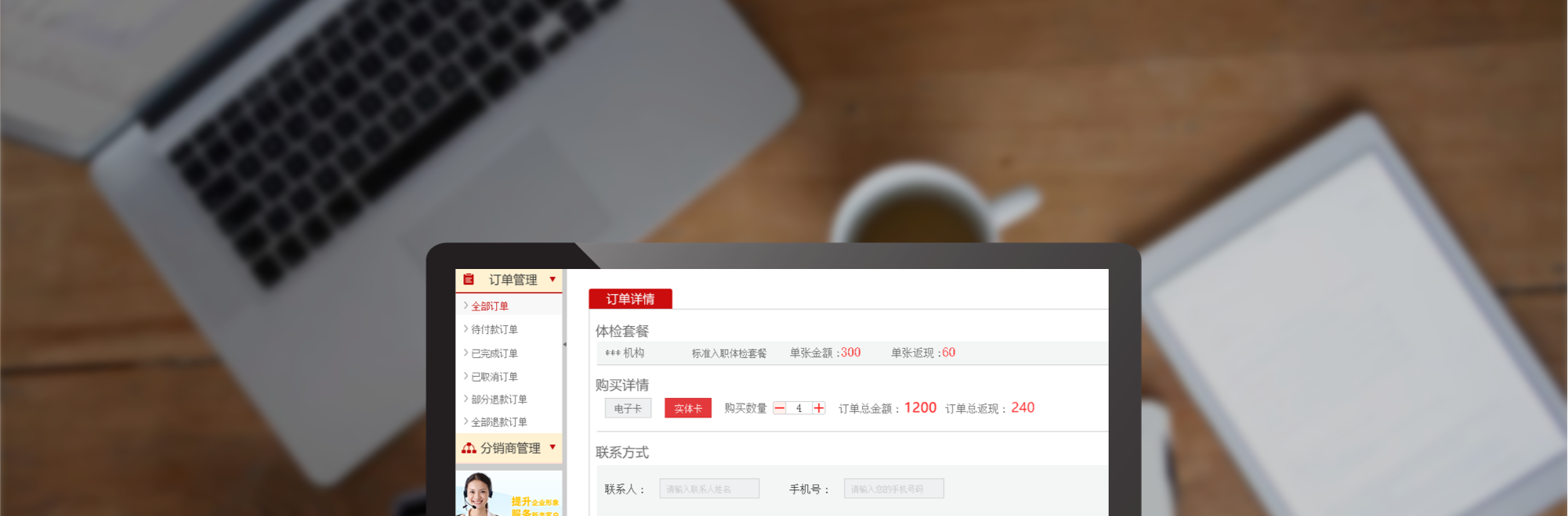 覆蓋全國(guó)的體檢資源,定制方便,落單系統(tǒng)功能強(qiáng)大方便,多平臺(tái)一體,終于能將業(yè)務(wù)推廣至全國(guó)。